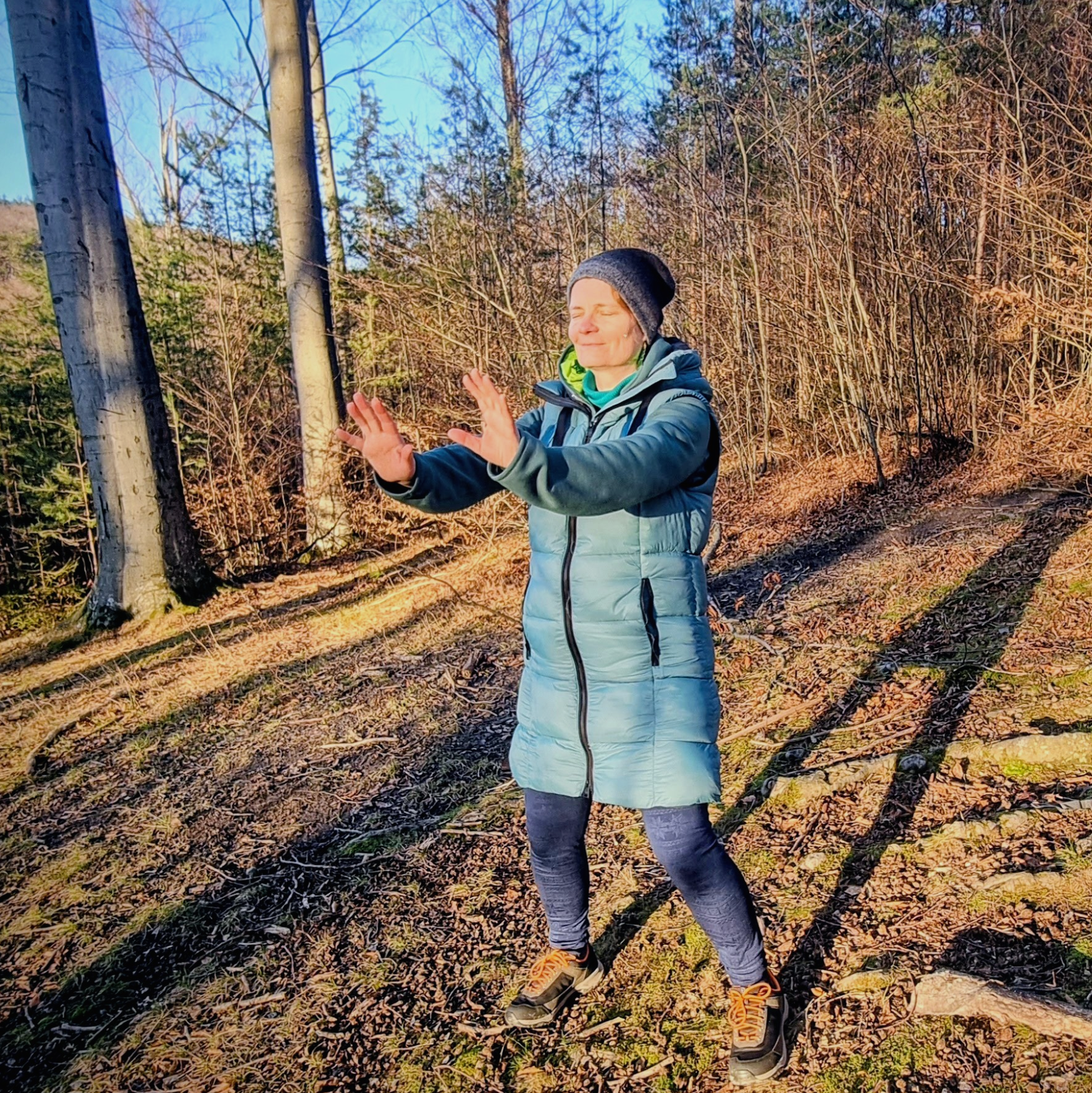 Ich praktiziere seit 2007 verschiedene Formen des Qi Gong – zunächst für mich selbst, später auch mit kleinen Gruppen, sowohl in Innenräumen als auch draußen in der Natur/Wald.